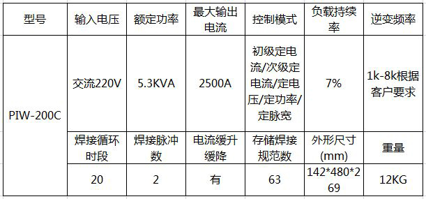 高頻逆變焊接電源PIW-250C功率參數(shù):